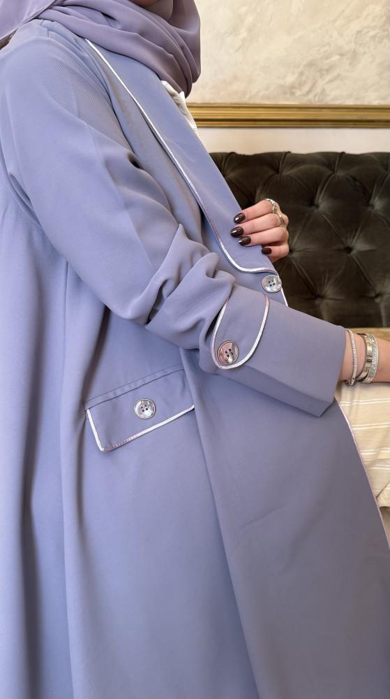 - عبايات ديم تحتوي على تفاصيل أنيقة مثل طوق البليزر والجيوب الجانبية تعزز من جاذبية العباية.