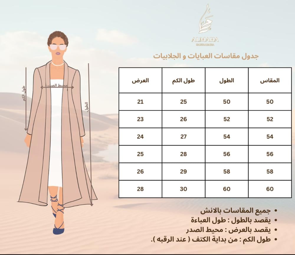 عبايات ديم من Almaha هي اختيار مميز يعكس أناقة لا مثيل لها ، صممت من قماش الكريب الكوري عالي الجودة لتضمن لك الراحة والمتانة طوال اليوم.