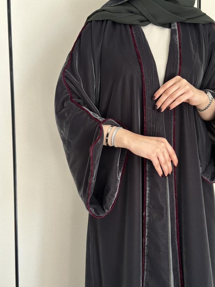 عباية نيار – فخامة المخمل بتصميم كلوش أنيقعباية نيار ليست مجرد قطعة أزياء، بل هي تجسيد للأناقة الهادئة والتميز الراقي.